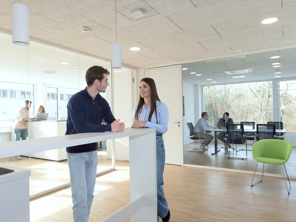 Mit vergrößerten, teils offenen Flächen, einem großzügigen IT-Bereich, ergonomischen Arbeitsplätzen sowie modernen Besprechungsräumen und einer Dachterrasse wurde der Standort deutlich aufgewertet.